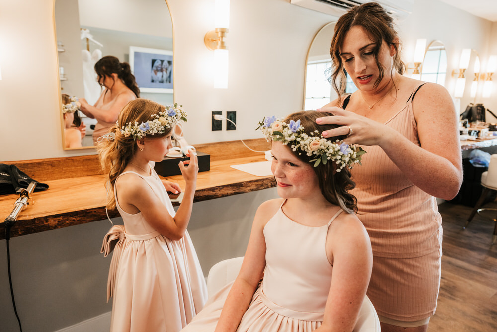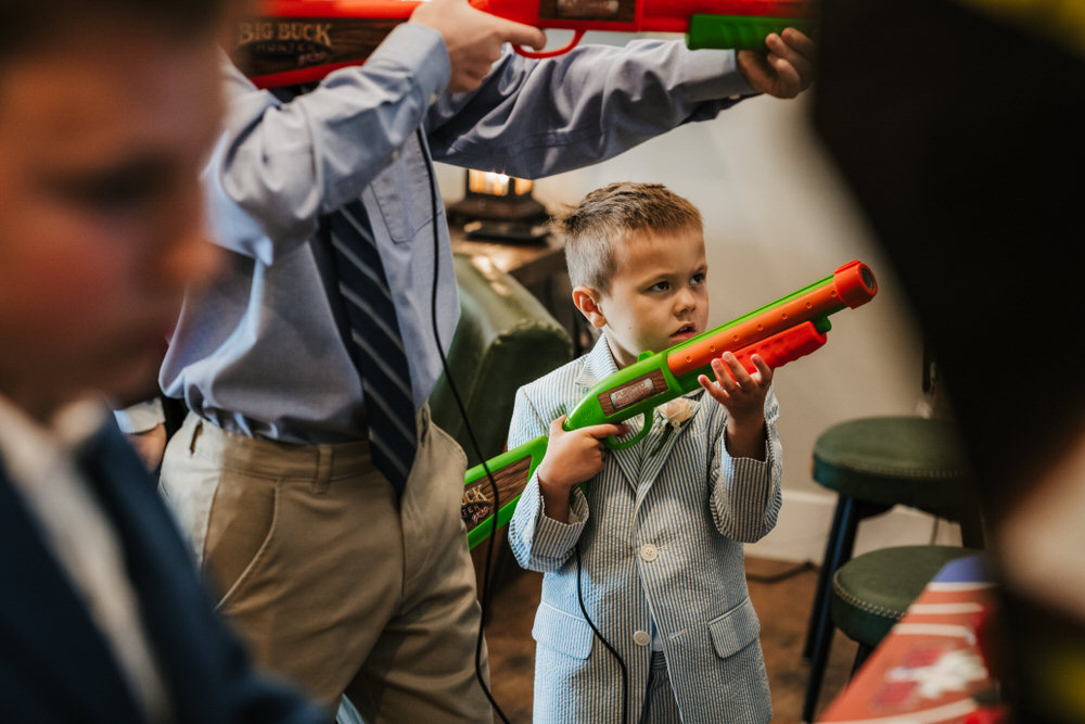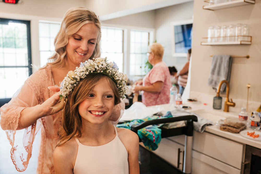 The bridal suite buzzed with laughter that morning — music playing, kids darting between rooms, and Molly surrounded by her closest friends. Down the hall, Justin’s space had a different rhythm — relaxed, full of jokes, and the occasional toast to calm the nerves.