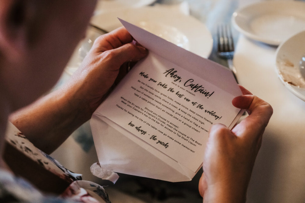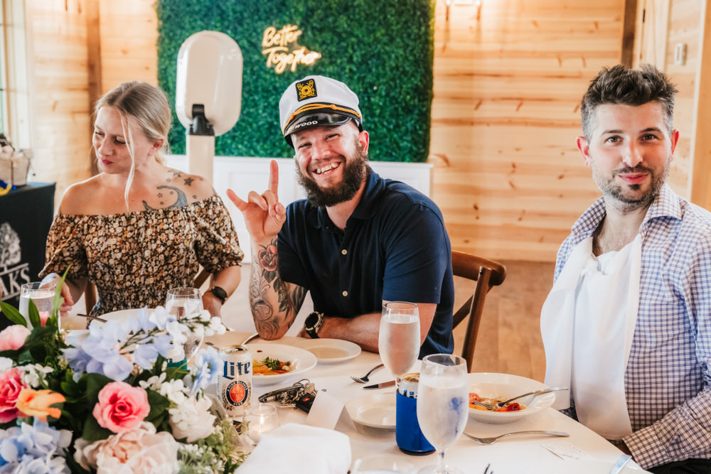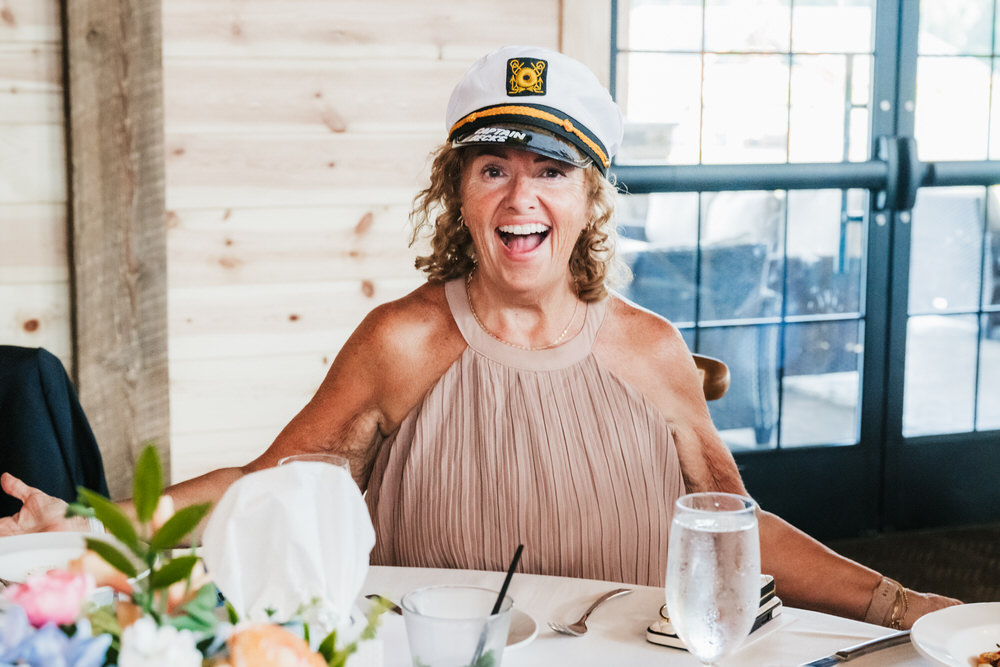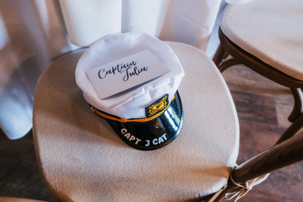 At the reception, guests discovered another surprise — captain hats! At each table, one person had been secretly assigned as the “Captain.” Their job? Keep their table dancing, laughing, and fully in the moment. By dinner’s end, captains were easy to spot — proudly wearing their hats and rallying their crews onto the dance floor. It turned the evening into one big team celebration, blending strangers into fast friends.