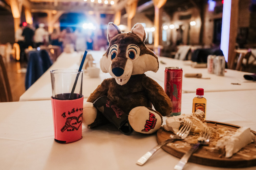 And, of course, a few Wiley the Wolf cameos made everyone smile — from a small figurine tucked near the cake table to a playful embroidery on Justin’s tie. The little wolf touches weren’t overdone; they were just enough to remind everyone where this unique story began.