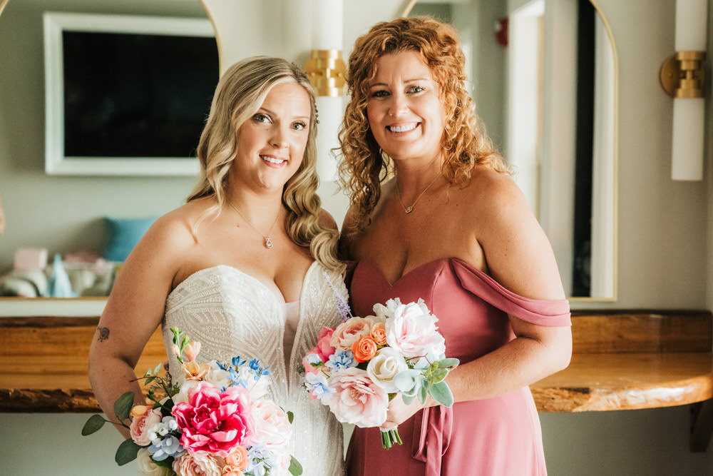 Molly and Justin’s wedding at Tall Oaks West was filled with heart, laughter, and originality. Every part of their day reflected who they are — devoted parents, loyal friends, and two people who love deeply and live joyfully. Their love story began years ago while working together at Great Wolf Lodge, so it only made sense that a little “wolf magic” followed them into their wedding day. Guests spotted subtle nods to their story throughout the celebration — from playful décor touches to surprise appearances from Wiley the Wolf himself.