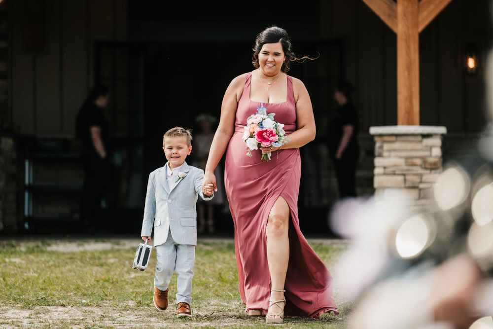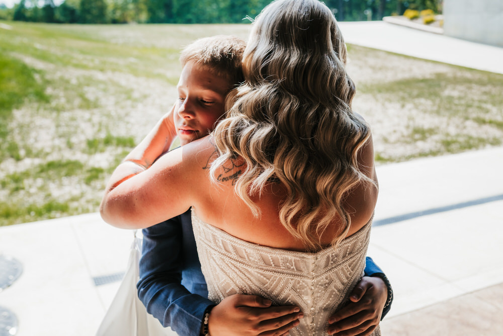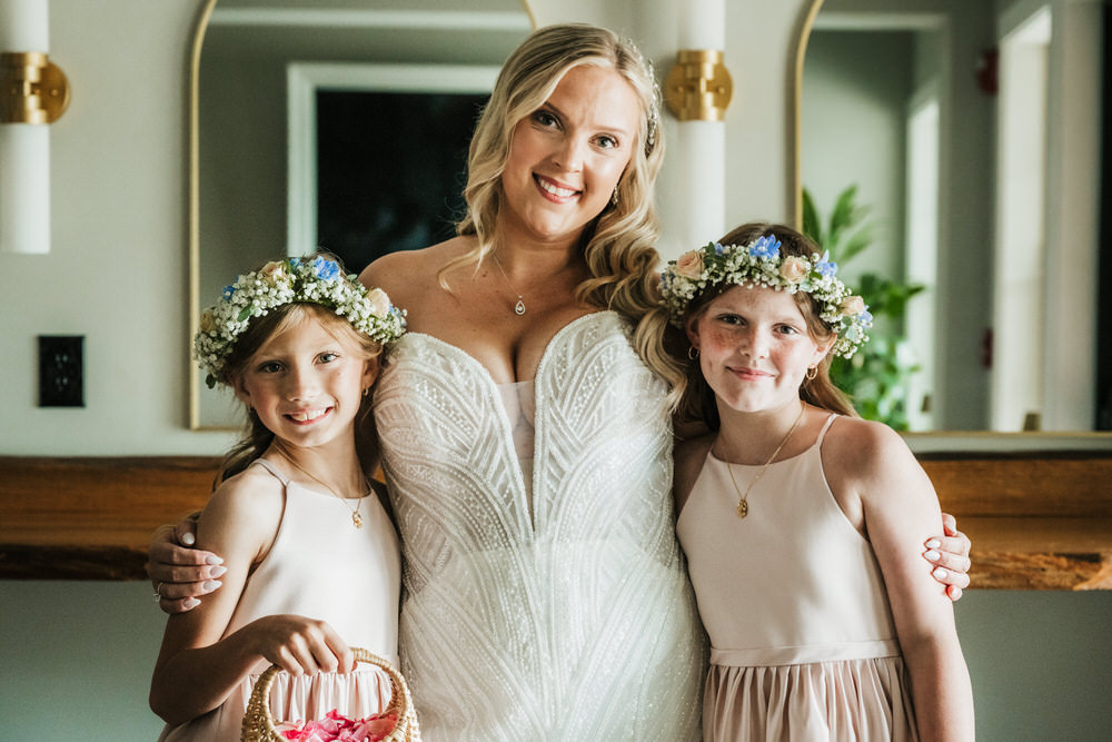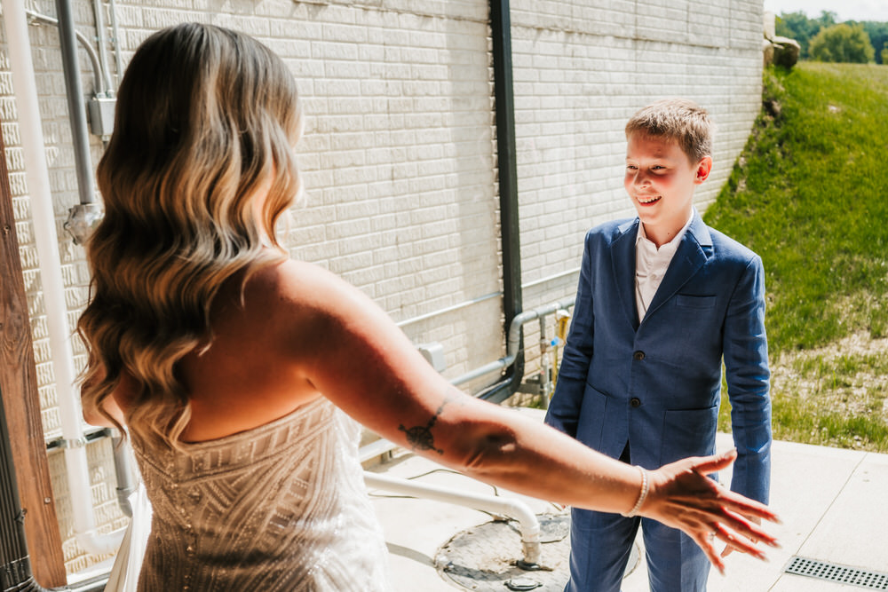 Both Molly and Justin shared heartfelt first looks with their children before seeing each other. Molly knelt beside her son, holding his hands as she told him how much she loved him and how this day was about both of them. Her voice shook a little, but her smile said everything. Justin’s first look with his daughter was equally moving — laughter through tears, a hug that lasted a little longer, and words that let her know how loved she is.