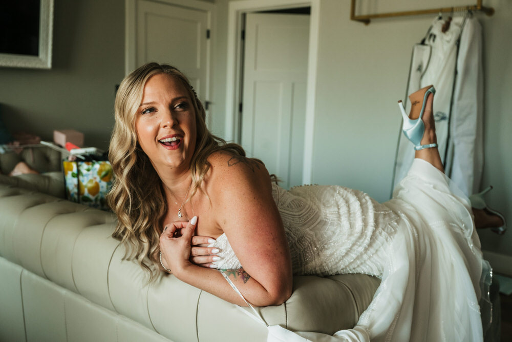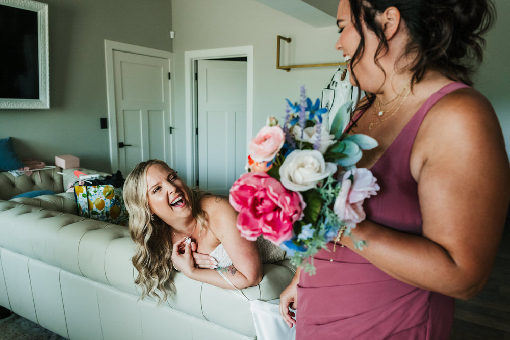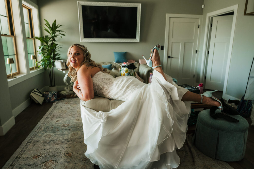 Later in the day, the balcony became another favorite spot. Before the ceremony, Molly stood there quietly, overlooking the pond and taking a moment to breathe it all in. Afterward, it became the perfect backdrop for sunset portraits outdoors — golden light, soft breeze, and the reflection of joy across the water.
