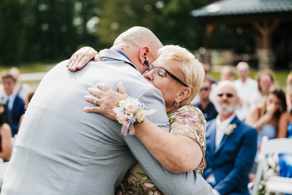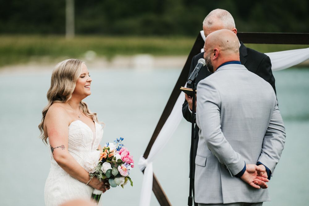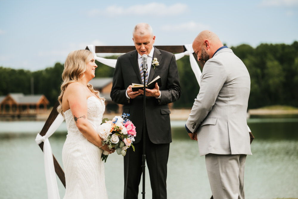 The ceremony at Tall Oaks West (located not far from CLE) took place by the pond, where gentle ripples mirrored the calm joy of the day. The air was full of anticipation, but the moments before the ceremony were especially emotional.