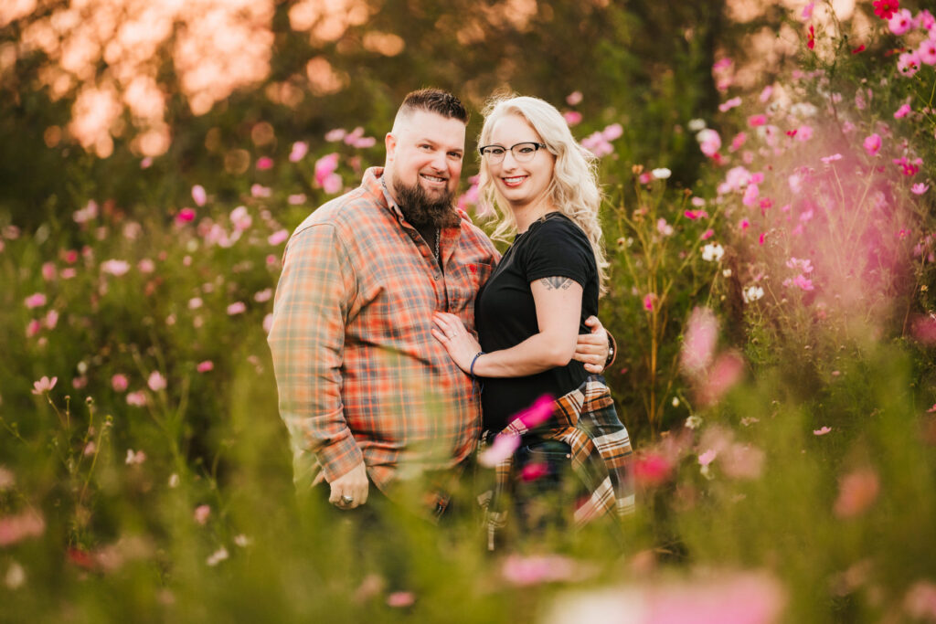 Katie and Adam’s story is rooted in intention, resilience, and quiet humor. Katie, a night-shift nurse originally from the Geauga area, and Adam, who works in private security and is deeply involved with the Marine Corps League and Toys for Tots, now call Canton home. Their engagement was as memorable as it was real—on top of a snow-covered mountain after a nerve-wracking hike, where Katie felt the fear of the climb and Adam felt the pressure so intensely he actually threw up before proposing. For their wedding day, they were most excited about photos that feel honest and complete: candid moments, getting-ready images, barn and wildflower scenes, glowing sunset light, and a full view of the celebration from above if possible. Their ceremony welcomed by all of their favorite people, a special dad reveal, their dog Frodo, a brother serving as flower girl and ring bearer, nieces in the bridal party, and Adam’s Marine friends standing beside him—every detail chosen to reflect the people and moments that matter most to them.