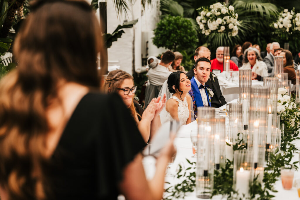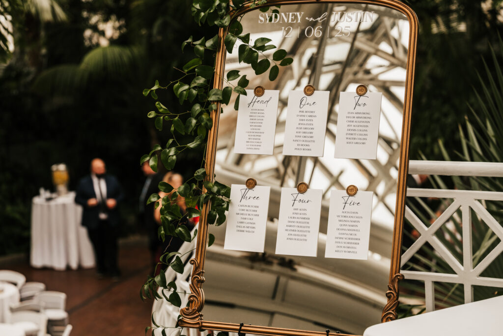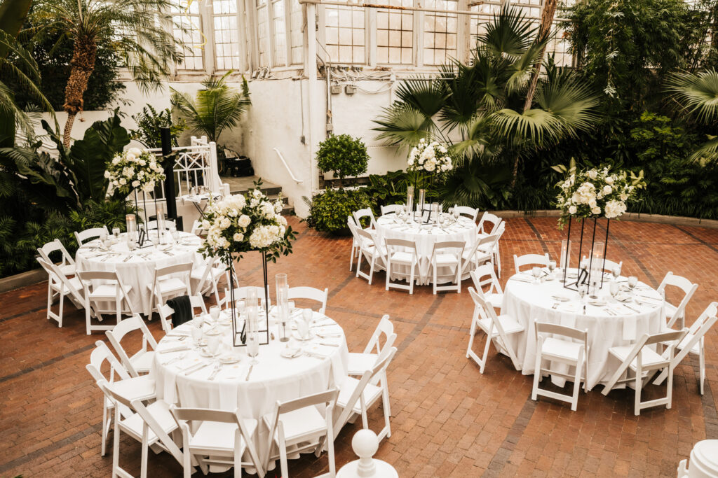 Their ceremony and reception were held inside the Palm House, the large glass greenhouse at the center of the property. Even more meaningful, their celebration was one of the final weddings held there before the upcoming renovation. It felt special knowing the space was about to begin a new chapter.